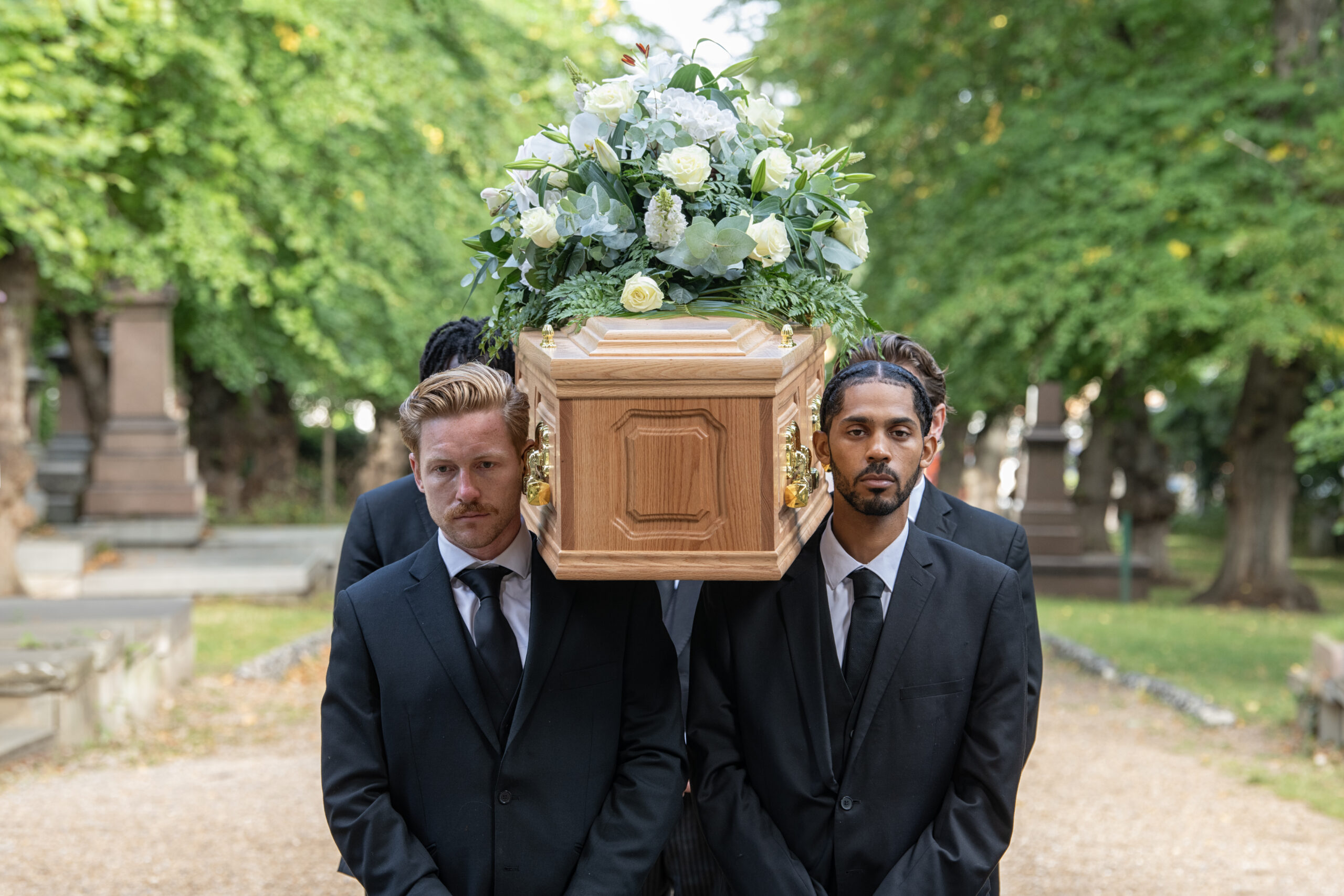 On the day of the funeral, our team of professional pallbearers (coffin bearers) and chauffeurs will be there to support you together with your Conductor and any officiant you have chosen for the day. Our team will always be immaculately dressed in matching smart uniforms. If you wish, you can also request less traditional attire for our funeral team too.