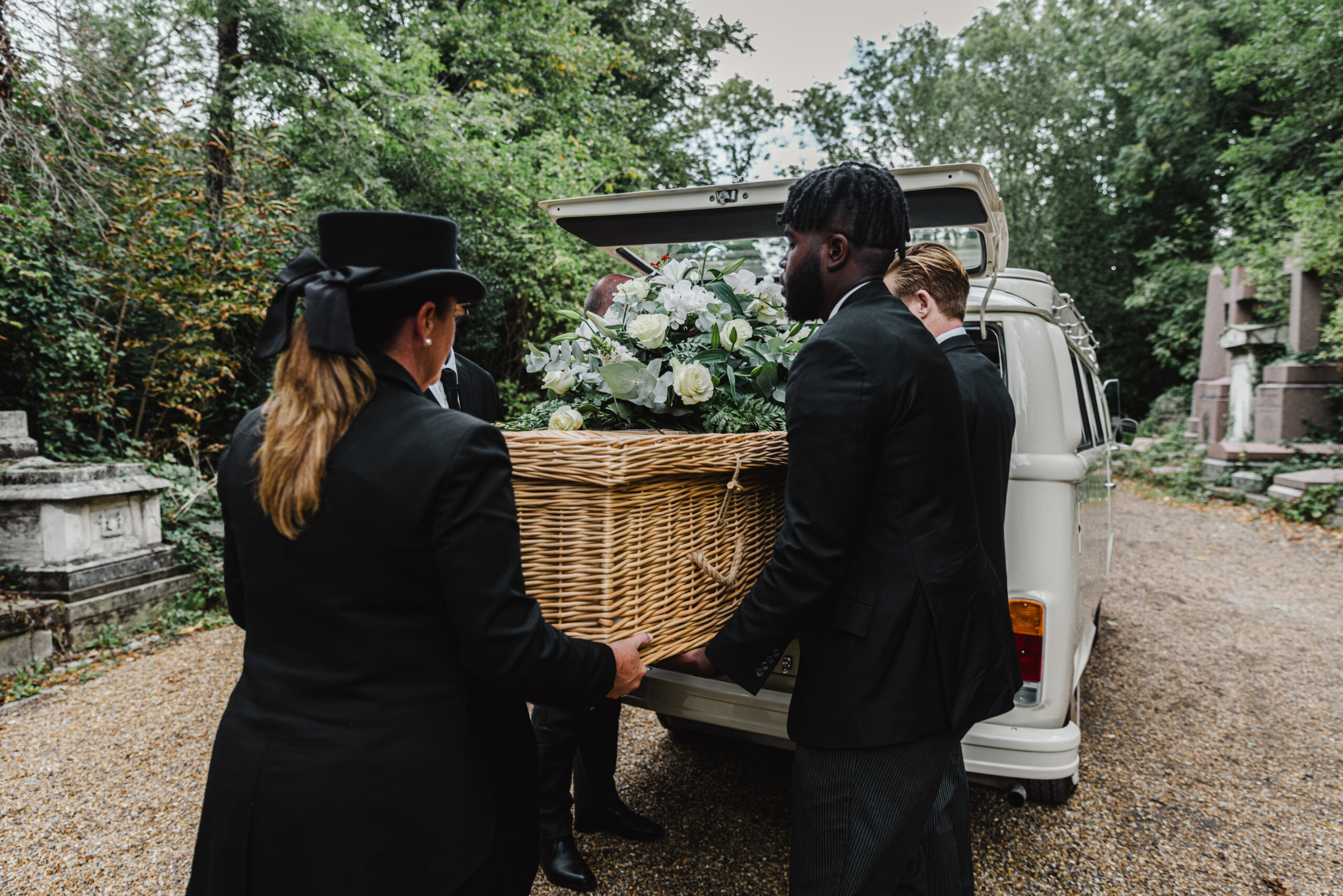 The primary role of a Funeral Conductor is to ensure that everything runs smoothly and as planned for the funeral. On the day, you will be greeted by one of our Conductors, Donna, Stuart, Alex, Dean, Brian or Martin. Your conductor, recognisable with a top hat and cane, will be your main point of contact and will compassionately guide you and all attendees through the day. Each of our conductors are highly experienced and will answer any of your questions as well as providing instruction to our team or family members who choose to carry the coffin.